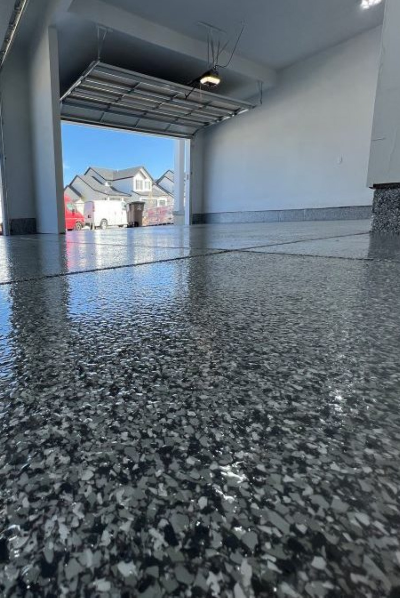 Our team installs several types of epoxy flooring systems depending on the space and the look you want. Popular options include flake epoxy floors, metallic epoxy systems, solid colour coatings, and polyaspartic floor coatings. Each system is designed to protect the concrete while giving the floor a clean, finished appearance.